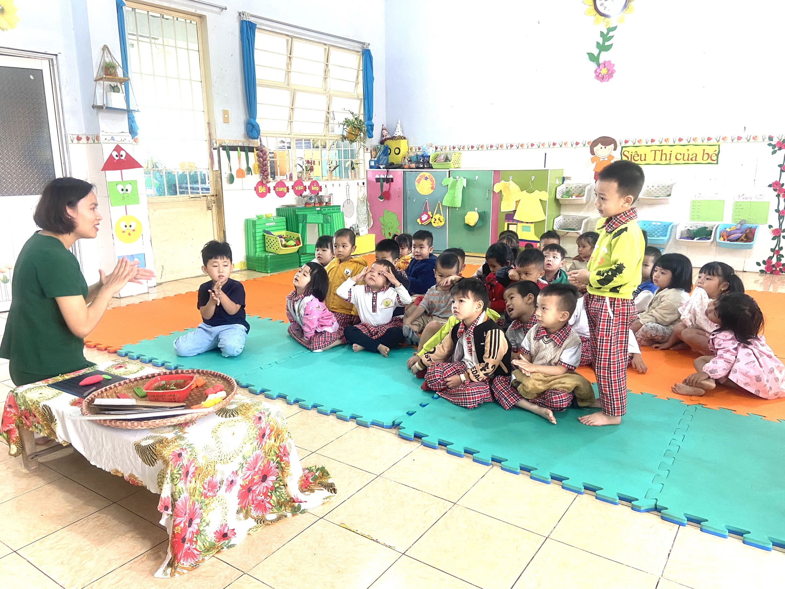 Hoạt động này các bé lớp Mầm 2 rất hứng thú tích cực tham gia hoạt động. Từ đó giúp trẻ biết giữ gìn sản phẩm bạn làm